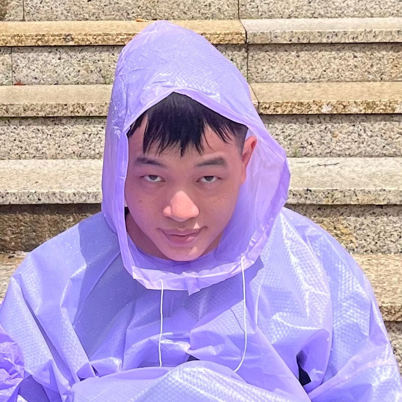 Blue silk tuxedo with marbled aquatic pattern and dark lining. Sleeves are complete with rounded hem and black buttons.